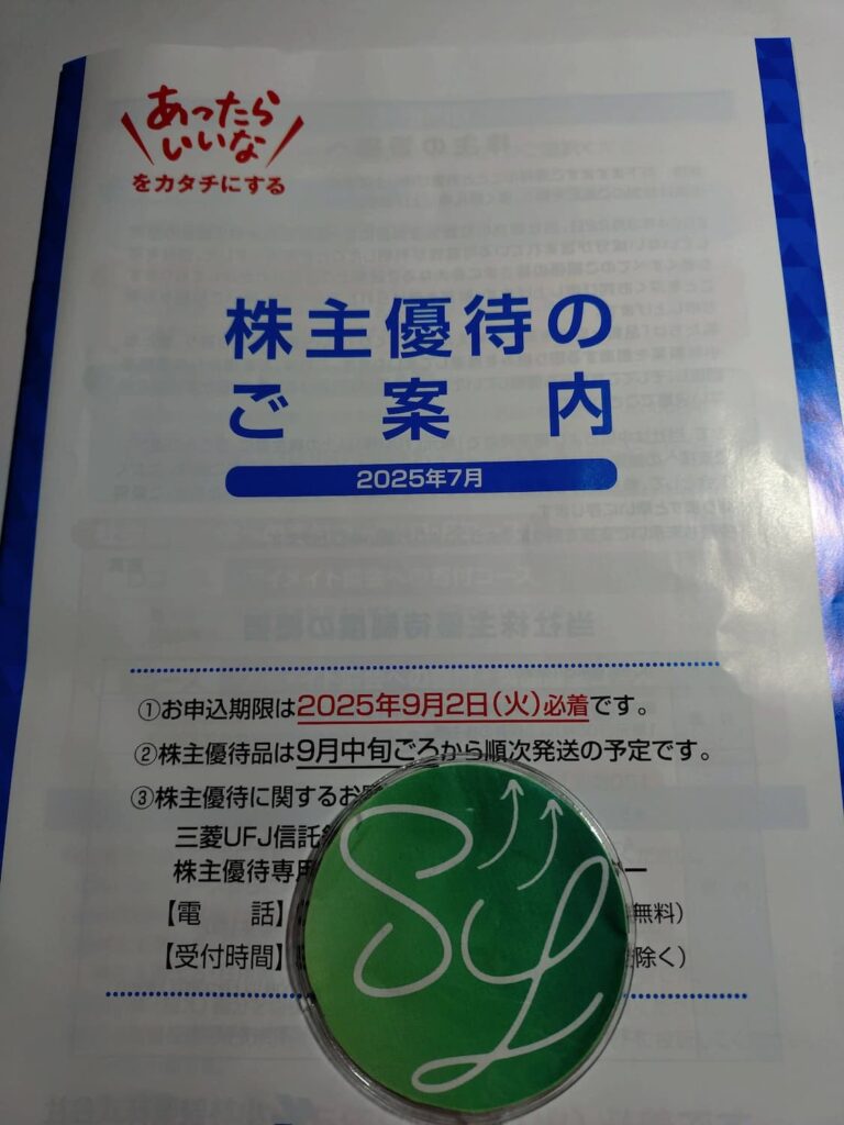 受取日 | 2025年8月4日(優待案内) 2025年9月25日(商品到着) |
