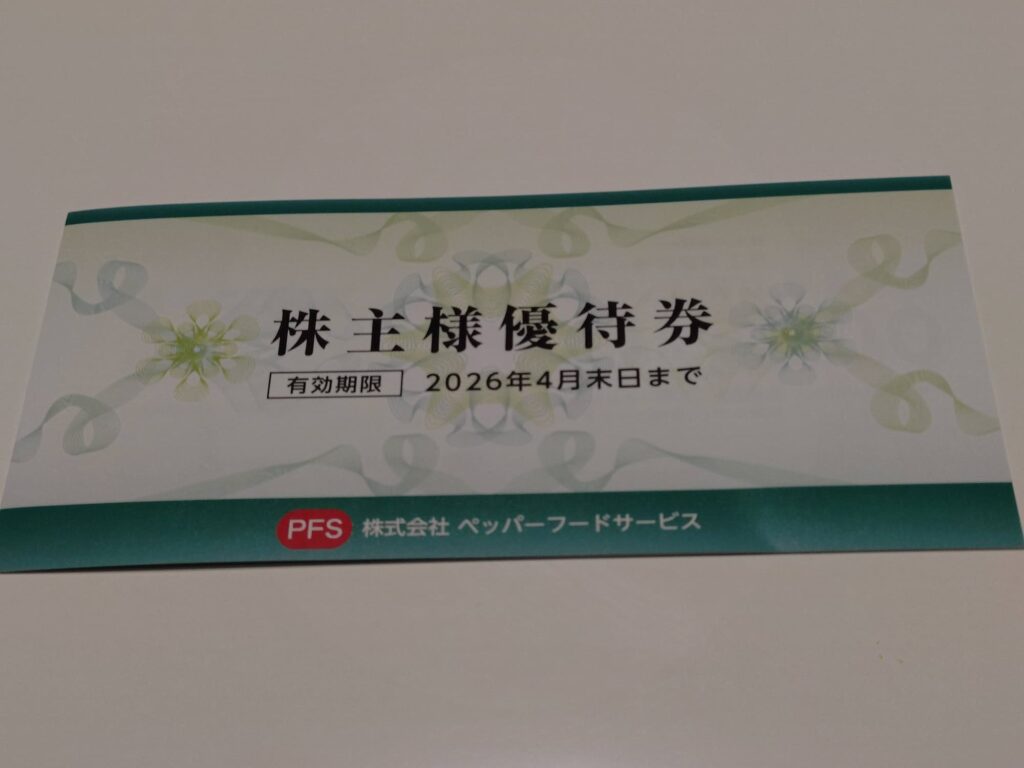 ペッパーフードサービス(3053)から株主優待が届きました。
