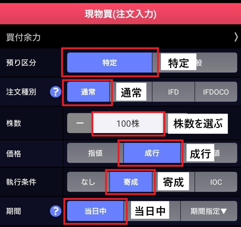 続いて現物を注文します。