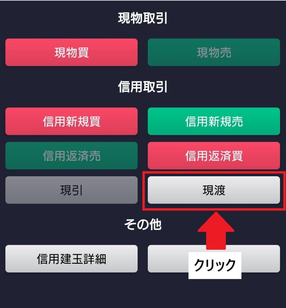 「現渡」をクリックします。